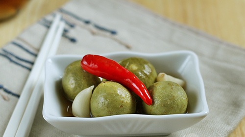 Rồi đem chần qua nước sôi nóng già trong 1 phút, để ráo nước. Chị em cần lưu ý, tỉ lệ ngâm mắm là 1 bát mắm, 1 bát nước (cho 0.5kg sấu), đem đun sôi hỗn hợp này. Khi mắm nguội, cho sấu chần vào cùng với tỏi, ớt… ngâm từ 5-7 ngày là ăn được. Từng quả sấu ngâm mắm cứ thơm phức dậy mùi mắm, tỏi. Khi ăn, bạn có thể cắt thịt sấu rồi lại thả vào bát mắm ngâm, sấu giòn giòn, cay cay rất tuyệt! Nước mắm ngâm sấu có thể dùng để chấm rau luộc vô cùng thích hợp.