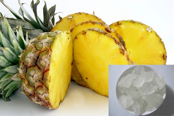 Bài thuốc 1: Lấy một quả dứa đã gọt sạch mắt, khoét 1 lỗ và cho vào 0,3g phèn chua. Nấu nhừ khoảng từ 2-3 giờ, để nguội ăn cả cái lẫn nước. Dùng liên tục trong vòng 7 ngày liền, mỗi ngày 1 quả dứa như vậy để đạt kết quả như mong muốn.