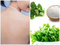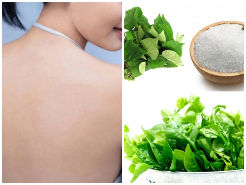 Những nốt mụn ở vai và lưng là kẻ thù của những chị em thích diện đồ trễ và sexy. Tuy nhiên chúng ta cũng không cần quá lo lắng mà tìm đến những spa trị mụn đắt đỏ và mua những sản phẩm trị mụn cầu kì.Chỉ cần kết hợp rau mồng tơi, rau diếp cá và muối trắng, những nốt mụn đầu đen, mụn trứng cá, và mụn cám sẽ không còn “chỗ trú ngụ”.