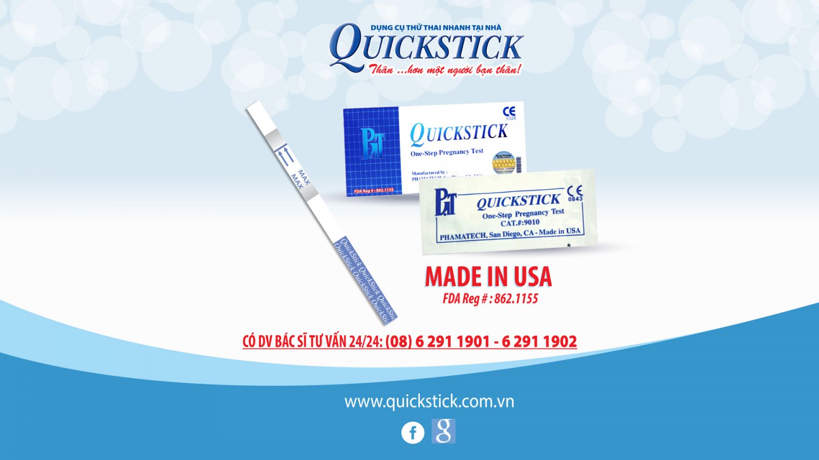- Nên mua các loại que thử thai có thương hiệu, tên tuổi quen thuộc như Quickstick – que thử thai nhanh đầu tiên ở Việt Nam, xuất xứ Hoa Kỳ