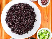 – 4 chén cấm gạo, nấu chín theo hướng gói, ngũ cốc tách bằng ngón tay của bạn.
