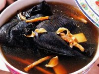 Gà đen 1 con, sơn thù du 25g, xạ hương 3g, phá cố chỉ 20g, gừng tươi, gia vị, nước đủ dùng. Cho gà đen làm sạch, bỏ nội tạng, bỏ móng. Các vị thuốc trên rửa sạch cho vào túi vải buộc chặt.
