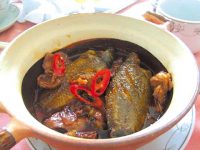Bài 2: cá diếc 1 con, sa nhân 0,5g, hành, gừng tươi và gia vị vừa đủ. Sa nhân tán bột; cá diếc làm sạch, bỏ nội tạng, rán qua rồi đem kho với một lượng nước vừa đủ cùng với bột sa nhân, khi chín chế thêm gia vị, chia ăn vài lần trong ngày. Công dụng: tiêu thực khai vị, hành khí hóa thấp, ôn vị chỉ nôn nấc.