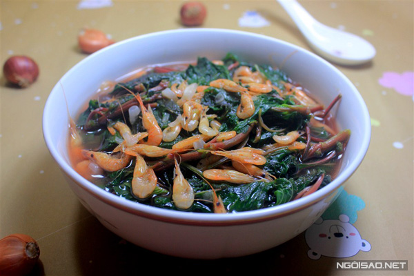 – Thêm lượng nước vừa ăn vào đun sôi, khi nước sôi thì cho rau dền vào nấu cùng. Đun cho đến khi rau dền chín tới thì nêm lại gia vị cho vừa ăn rồi tắt bếp. Múc canh rau dền ra tô và ăn với cơm nóng.
