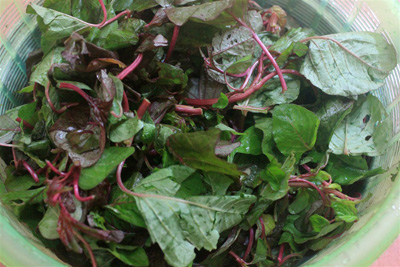 – Rau dền nhặt lá và ngọn non, sau đó rửa sạch.