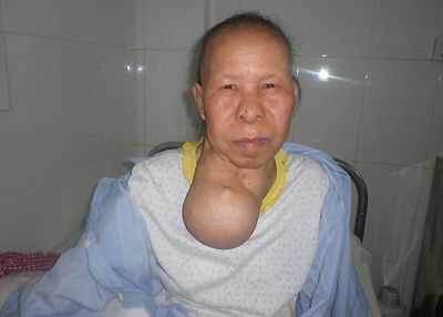 Thạc sĩ Trần Nhật Tiến, trưởng khoa Ngoại, Bệnh viện U bướu Hà Nội, người mổ cho bà Nguyễn Thị Ky (xã Sơn Công, Ứng Hòa, Hà Tây), cho biết, đây là khối bướu cổ to nhất từ trước tới nay mà viện từng phẫu thuật.