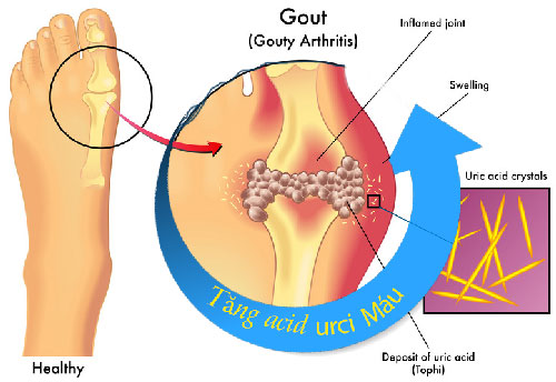 - Giải phóng các tinh thể acid uric ra khỏi khớp