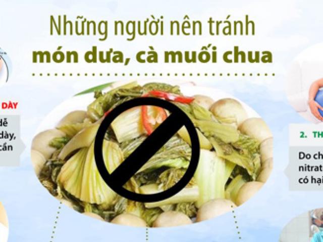 Dưa muối, cà muối là món ăn được nhiều người xem là thứ “khoái khẩu”, tuy nhiên có một số người khi sử dụng các món ăn này lại không hề tốt cho sức khỏe.