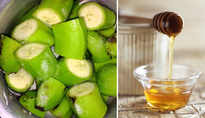 Cũng giống như chế biến với nghệ thì chuối xanh cũng cần nghiền thành bột rồi trộn với mật ong. Chuối xanh tước bỏ vỏ, đem ngâm nước cho bớt nhựa và chát. Sau đó cắt lát đem phơi khô và nghiền thành bột. Bạn có thể trộn bột chuối với mật ong để ăn hoặc có thể viên nhỏ chúng và nuốt để giảm cơn đau dạ dày.