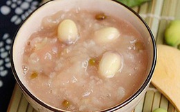 Bài 7: Kê 50g, lạc 50g, đậu đỏ 30g, đường phèn lượng vừa đủ. Cho kê, lạc và đậu đỏ ngâm cho nở, sau đó rửa sạch. Cho lạc và đậu đỏ vào nồi cùng lượng nước vừa đủ, đun lửa to cho sôi, rồi chuyển lửa nhỏ trong 30 phút. Sau đó cho kê vào đun cùng tới khi chín nhừ, thêm đường phèn nêm vừa miệng.