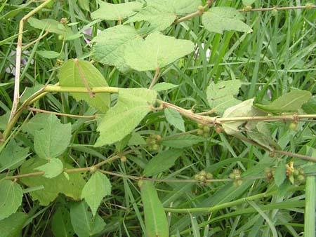 Cây thường mọc hoang. Có thể trồng bằng gốc hay giâm cành vào mùa xuân. Loại cây sống lâu năm, có thể cao tới 1,5 – 2m. Lá lớn, mọc so le, hình tim, dài 7 – 15cm, rộng 4 – 8cm, mép có răng cưa, đáy lá hình tim hay hơi tròn, mặt dưới trắng vì có nhiều lông trắng, mặt trên có màu lục sẫm, ráp, có 3 gân từ cuống phát ra.