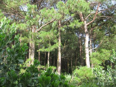 Lá cây hình kim, thường đính 3 lá kim trên một đầu cành ngắn. Lá kim thường có màu xanh ngọc, mỗi lá kim thường dài 20-25 cm, lá thường cứng khi vò toát ra mùi thơm đặc trưng.