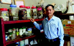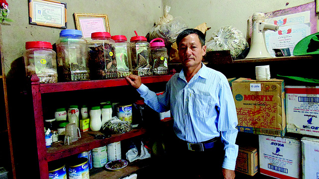 Lương y Đỗ Văn Chính bên những vị thuốc trong phòng khám