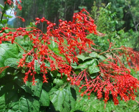 Cây Xích đồng nam, có tên khoa học Clerodendrum japonicum (Thunb.). Là loài cây bụi mọc hoang ở nhiều nơi cao 1,5-2 m, cành non vuông, thân già hình tròn, đường kính 0,3-0,8 cm. Mặt ngoài thân màu nâu bạc- nâu xám. Lá mọc đối hình tim, cuống dài 10-19 cm, đầu nhọn, mép có răng cưa nông. Phiến lá dài 10-20 cm rộng 8-15 cm, gân nổi rõ. Cụm hoa có màu đỏ, dài 10-20 cm. Bộ phận dùng làm thuốc là rễ và lá.