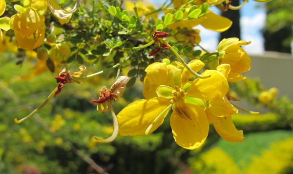 Cây Tô mộc là một cây cao 7 – 10m, thân có gai. Lá kép lông chim, gồm 12 đôi, hay hơn 12 đôi lá chét, hơi hẹp ở phái dưới tròn ở đầu, mặt trên nhẵn, mặt dưới có lông. Hoa 5 cánh màu vàng mọc thành chùm, nhị hơi lòi ra, nửa dưới chỉ nhị hơi có lông, bầu hoa phủ lông xám. Quả là một giáp dẹt hình trứng được dày, dai, cứng, dài từ 7 – 10cm, rộng từ 3,5 – 5cm, trong có 3-4 hạt màu nâu.