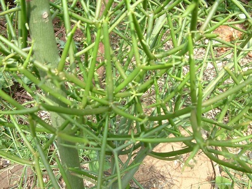 Cây xương cá là một loại cây thuộc họ xương rồng, không có lá và gai. Cây có vị cay, hơi chua, tính mát, hơi có độc, có tác dụng thúc sữa, sát trùng, khử phong, tiêu viêm, giải độc. Cây được sử dụng để chữa bệnh thường có nhiều mủ trắng đục như sữa.Tuy nhiên, mủ của cây xương cá có thể gây hại cho mắt. Vì thế, khi thao tác (bẻ, cắt, …) cần phải cẩn thận, tránh để mủ dính vào mắt bởi vì mủ có thể gây tổn thương, mù mắt. Nếu mủ dính vào tay, chân… thì dùng xà bông rửa. Còn nếu đã dính vào mắt thì rửa mắt bằng nước sạch rồi nhắm mắt lại, sau đó lấy chanh thoa lên mí mắt.