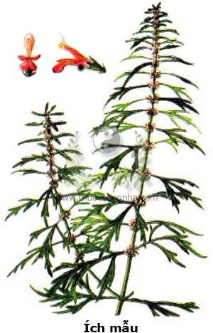 + Trị sản hậu huyết bị bế không ra được: Ích mẫu, gĩa vắt lấy nước cốt, thêm ít rượu, uống 1 chén (Thánh Huệ phương). + Trị sữa bị tắc gây ra nhü ung: Ích mẫu, tán bột, hòa với nước bôi trên vú 1 đêm là khỏi (Thánh Huệ phương). + Trị tai thối, chảy nước vàng ra hoài: dùng ngọn và lá non cây Ích mẫu, gĩa, vắt lấy nước cốt nhỏ vào tai (Thánh Huệ phương). + Trị đinh nhọt, lở ngứa: Ích mẫu gĩa nát đắp vào chỗ đau. Nhưng phải vắt lấy nước cốt uống mới mau khỏi và còn có { để phòng độc chạy vào trong (Thánh Huệ phương).