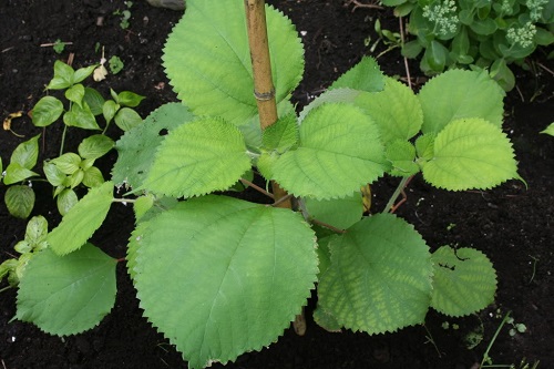 Là cây nhỏ, cao 1-2 mét, sống đa niên (7-8 năm), gốc hóa gổ, cành non màu đỏ nhạt, phủ nhiều lông. Lá mọc so le, có cuống màu đỏ, hình trái xoan, đầu nhọn, đáy tròn, lúc non phủ nhiều lông mềm ở cả hai mặt, lúc già thì mặt trên nhẳn màu lục sẫm, mặt dưới lông trở thành màu trắng bạc, mép lá có răng cưa đều. Hoa mọc ở kẻ lá, xếp thành chùy đơn, hoa đực và hoa cái mọc trên một cành. Quả bế, hình quả lê, có nhiều lông, hạt có dầu.