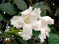 Cây gỗ lớn cao 15m. Lá kép lông chim một lần gồm 7 lá chét; lá chét không lông, lúc khô màu đen. Cụm hoa là chùm ngắn gồm nhiều hoa trắng, to, thơm, gần như đều. Ðài hình tàu dài 3-4cm. ống tràng dài 10-12cm, phía trên có 5 tai nhăn. Nhị 4. Quả nang thõng xuống, tròn, nhọn, có vách giả. Hạt dẹp, có cánh dày, dài 1,5-2,3cm.