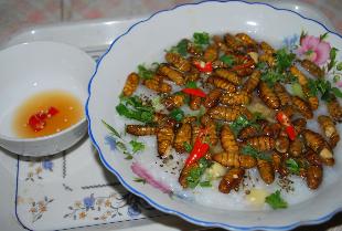 Nhộng tằm được chế biến thành nhiều món ăn ngon, hấp dẫn, giàu dinh dưỡng như các món nhộng tẩm bột chiên; nhộng rang lá chanh; nhộng trộn hoa chuối; nhộng xào xúc bánh tráng...