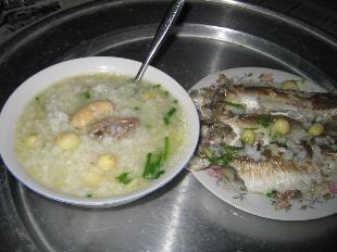 Món cháo cá đốiMón cháo cá đối ngoài ngon miệng và dễ tiêu ra, còn có tác dụng ích khí kiện tỳ, chữa được bệnh viêm đại tràng mãn tính.