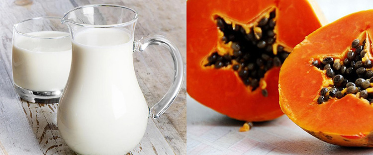 Đu đủ chứa nhiều chất papain là chất tẩy trắng da tự nhiên. Kết hợp với sữa tươi không đường làm thành hỗn hợp làm mịn và sáng da.