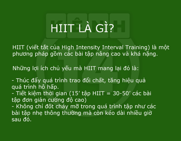 HIIT là một phương pháp thể dục bao gồm các bài tập nâng cao và khá nặng. Nó giúp đốt cháy mỡ thừa trong cơ thể không chỉ trong quá trình tập mà còn nhiều giờ sau đó.
