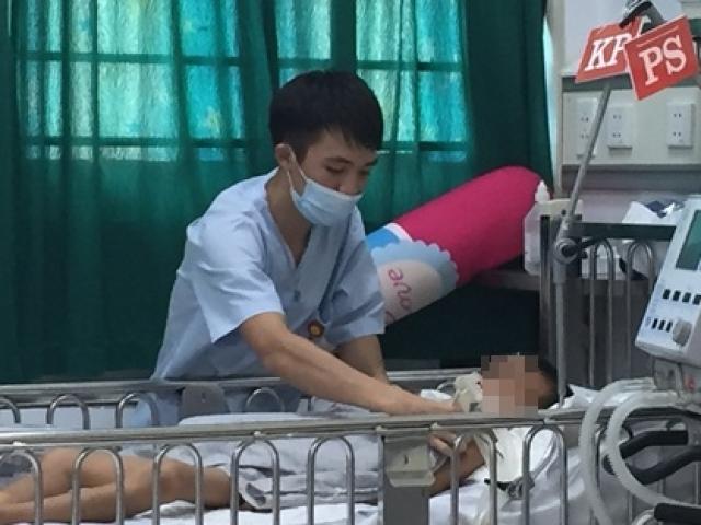 Hai ngày sau, cháu được chuyển đến Bệnh viện Nhi Trung ương trong tình trạng rất nặng: phải đặt nội khí quản và liệt vận động toàn thân. Đến nay, đã qua 14 ngày được các bác sĩ tích cực can thiệp bằng thở máy, thuốc chống viêm, chống phù, tình trạng của Long có cải thiện hơn nhưng cháu đã xuất hiện những di chứng nặng như liệt cơ hô hấp, liệt tứ chi. Dù đã mở được mắt song bé vẫn phải phụ thuộc vào máy thở.