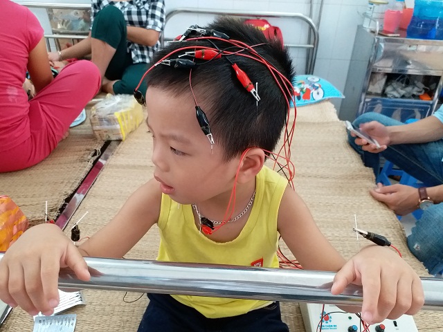 Điều trị trẻ bại não bằng phương pháp điện châm, thủy châm, kết hợp với xoa bóp bấm huyệt.