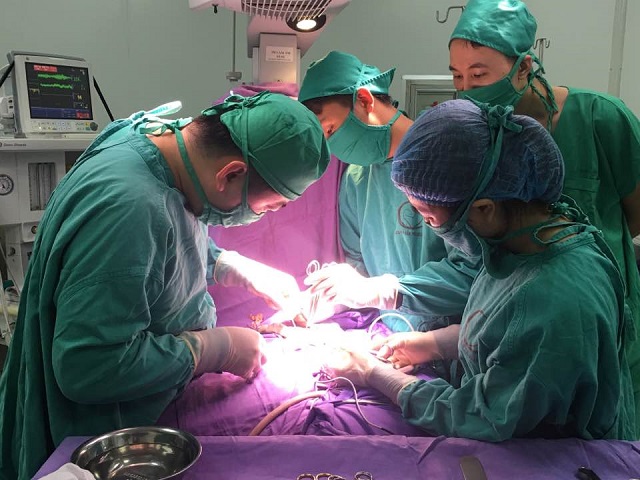 Các bác sĩ đang tiến hành phẫu thuật cho bé T.