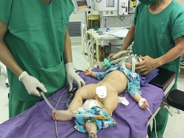 Ca phẫu thuật diễn ra trong khoảng hơn 20 phút, các bác sĩ đặt hậu môn, tháo lồng thành công cho bệnh nhi.